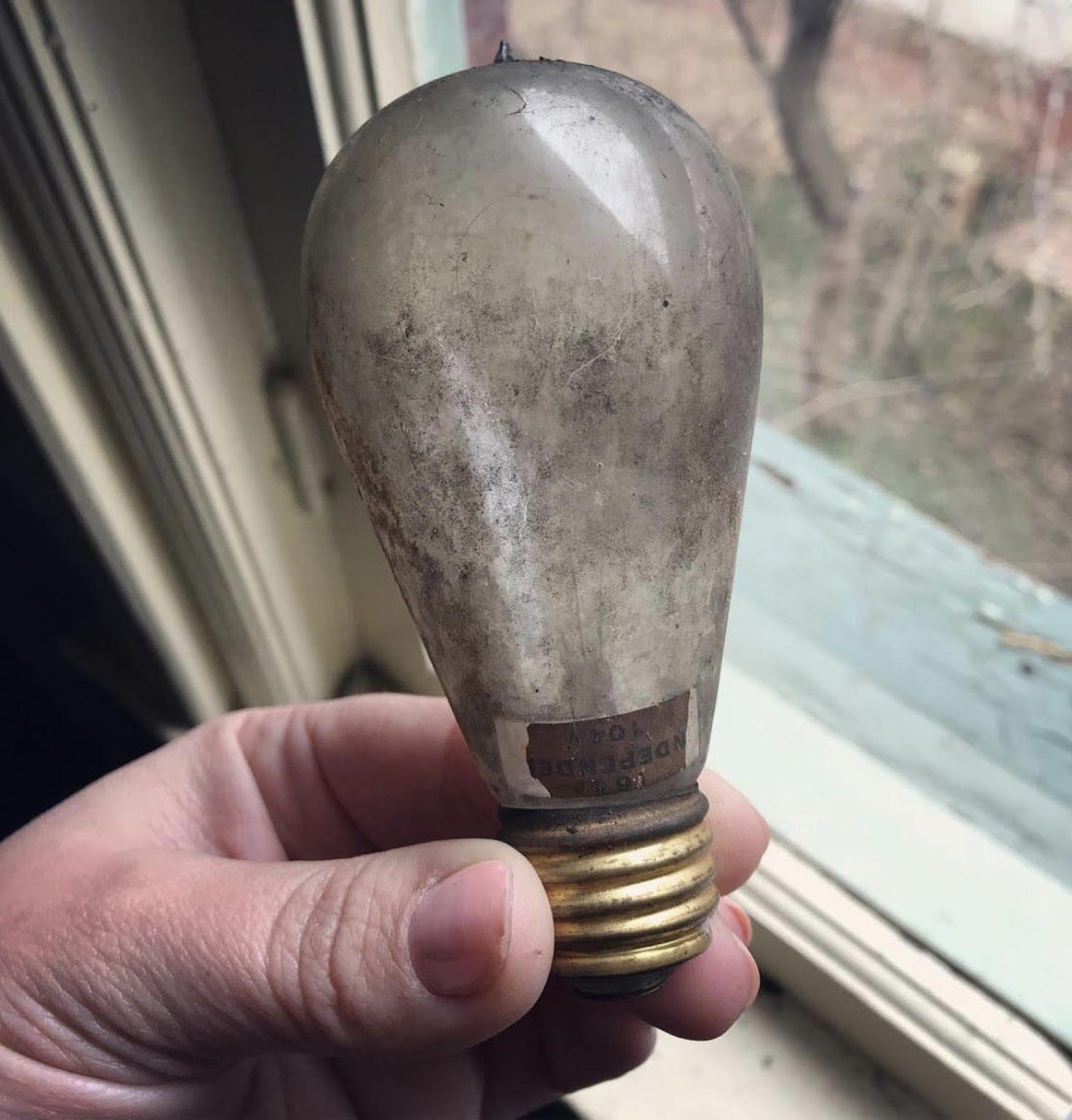 A couple renovating a home in Illinois found this old lightbulb in the walls - and it still works!