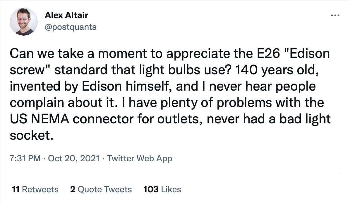 Great piece on Edison’s socket- I half expected a foray into the wonder of knob and tube wiring still working in some barns - Keep up the fascinating threads!